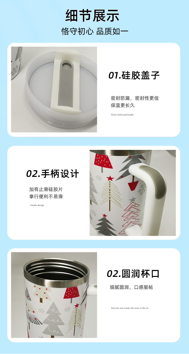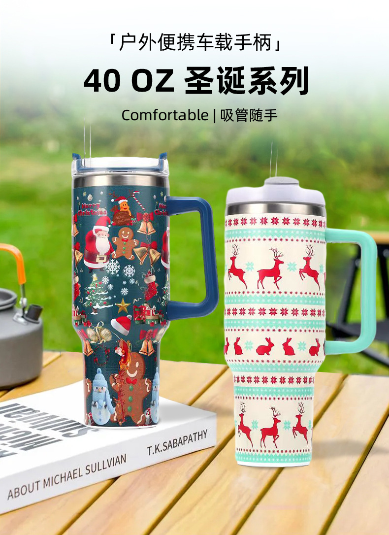 2023 New Stainless Steel Thermos Cup Portable Car Handle Cup Large Capacity 40Oz Car Cup Ice Bully Cup